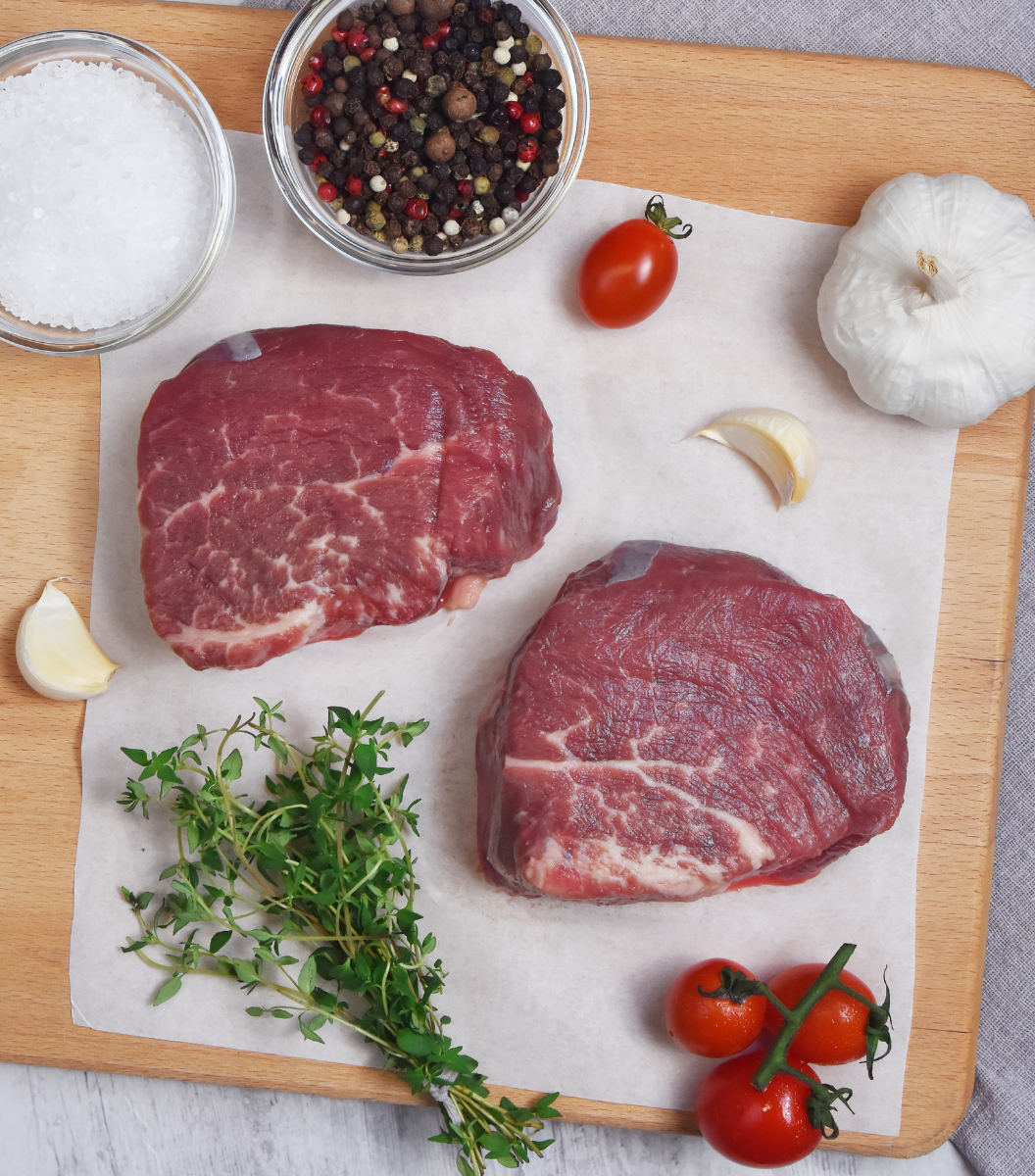 Mix the pepper with half a teaspoon of sea salt. Put the steaks on a board and season them well on both sides with the pepper and salt mixture until they’re lightly but evenly crusted.